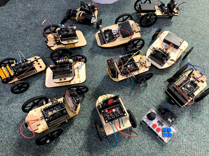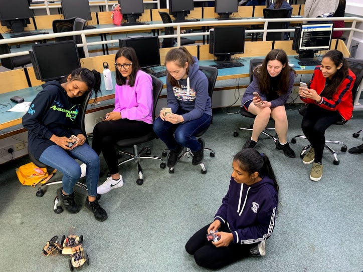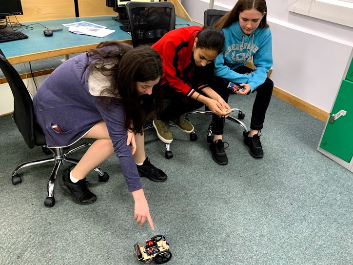It was a robotics workshop based around the Micro: bit. Our aim was to include an element of coding, electronics & making skills to build a remote-controlled robot and program it using Python, while also allowing the girls and boys to choose the features of their robot. For example, deciding on the motor speed; robot chassis design and wheel size.