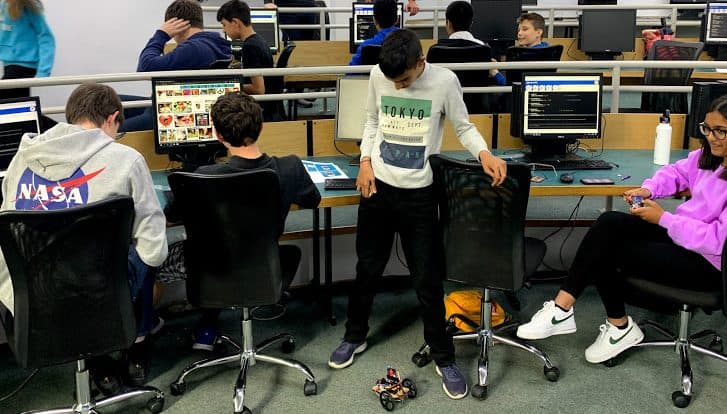 Towards the end of the workshop, everyone had successfully created a robot that was able to move in all directions. For those who also managed to reach the LED programming stage and the bumper activated direction change, they soon realised that there were so many more possibilities that could be added to their robot. What I think made the experience even more enriching was that the pupils got to collaborate with each other; showing other groups what they had made and coded and even a bit of friendly robot racing and robot tipping.